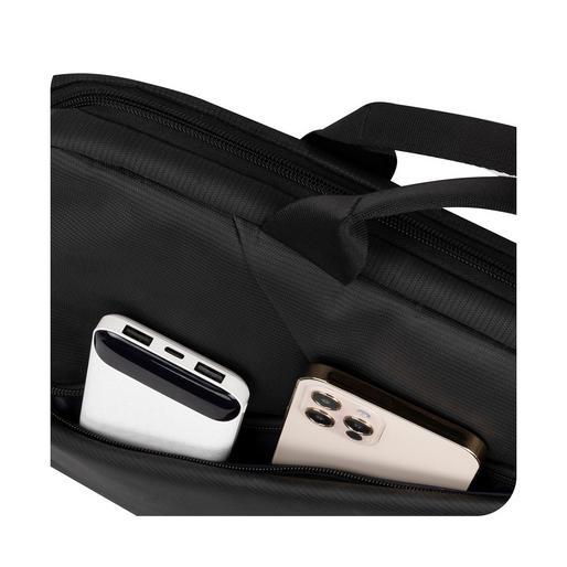 جیب خارجی این کیف، فضای مناسبی برای نگهداری گوشی هوشمند و لوازم کوچکتر مانند شارژر، کابل و هدفون ارائه میدهد. زیپهای دوتایی این محصول، دسترسی سریع و آسان به محتویات کیف را امکانپذیر میکنند و طراحی ارگونومیک دستگیرههای پددار، تجربه حمل آسان و راحت را تضمین میکند.