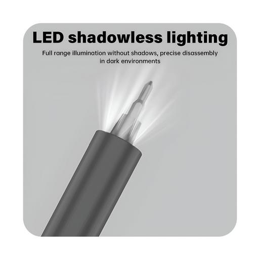 این مجموعه علاوه بر پیچ گوشتی شارژی، شامل ابزارهای تکمیلی نظیر دمگنتایزر(خاصیت مغناطیسی را حذف میکند)، اهرم باز کننده و کابل شارژ USB-C است که کارایی محصول را دوچندان می سازد. چراغ LED داخلی نیز در این پیچ گوشتی تعبیه شده تا در صورت تاریکی محیط بتوانید بهراحتی کار کنید.