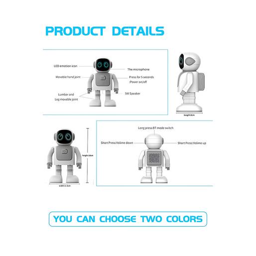«Robert RS01» از فناوری بلوتوث نسخه 4.2 بهره میبرد که اتصال بیسیم سریع و بدون تأخیر را با دستگاههای مختلف امکانپذیر میسازد. این ویژگی به شما آزادی عمل زیادی میدهد و میتوانید بدون نگرانی از کابلها، ربات را کنترل کنید. همچنین، اسپیکر داخلی با توان 5 وات این ربات، کیفیت صدای عالی را به همراه دارد. شما میتوانید موسیقیهای دلخواه خود را از طریق بلوتوث یا کارت حافظه MicroSD به ربات منتقل کرده و از صدای واضح و قوی آن لذت ببرید.