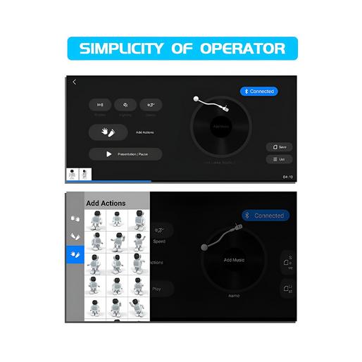 یکی از ویژگیهای خاص ربات «Robert RS01» که آن را از دیگر رباتها متمایز میکند، اپلیکیشن اختصاصی «Robertt» است. این اپلیکیشن برای هر دو سیستمعامل اندروید و iOS در دسترس است و امکان اتصال بلوتوثی ربات به دستگاه شما را فراهم میکند. با استفاده از این اپلیکیشن، شما میتوانید تمام ویژگیهای ربات را شخصیسازی کنید. تنظیم حرکات رقص، تغییر سرعت، انتخاب رنگ نورها و حتی تنظیم موسیقی پخششده از جمله قابلیتهایی هستند که به شما این امکان را میدهند تا تجربهای کاملاً سفارشیسازی شده از رقص و موسیقی داشته باشید.