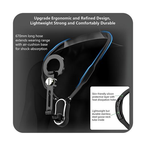 این هولدر گردنی به گونه ای طراحی شده تا تجربهای طبیعی از فیلمبرداری از زاویه دید خودتان داشته باشید. با قابلیت تنظیم فاصله گوشی نسبت به صورت، میتوانید تصاویر حرفهای ثبت کنید. طول آن (۶۷۰ میلیمتر) باعث می شود تا فاصله دید راحتتر شود و در حین فیلمبرداری بتوانید صفحه گوشی را به راحتی مشاهده کنید.