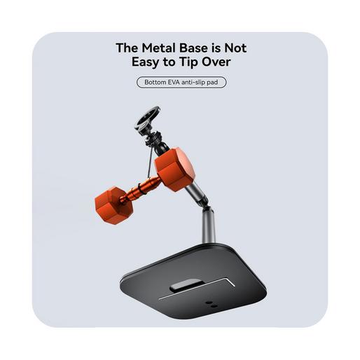 ساختار این محصول به گونه ای طراحی شده که دارای پایداری بالاست و از لرزش و حرکتهای ناخواسته جلوگیری میکند. بازوی قابل تنظیم و لولای مقاوم به کاربر اجازه میدهد تا زوایای مختلف را برای تصویربرداری بالاسری یا عمودی به راحتی تنظیم کند. سیستم جذب مغناطیسی پایه، نصب و جداسازی موبایل را ساده میکند و برای گوشیهای مجهز به MagSafe مانند آیفون های سری 12 به بعد طراحی شده است. کاربران سایر گوشی ها نیز میتوانند با استفاده از حلقه مگنتی موجود در بستهبندی از این قابلیت استفاده کنند.