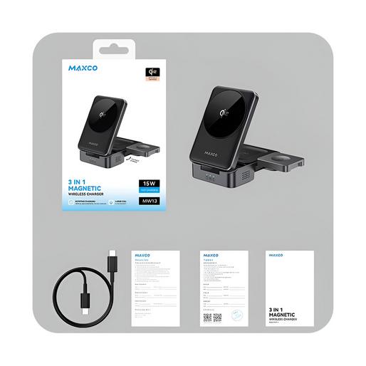 Maxco 3-in-1 Magnetic Wireless Charger Qi2 15W MW13